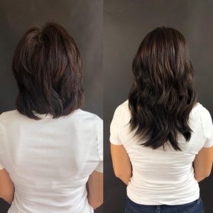 As you can see, we have expertise in apply extensions to hair of all types and textures, even curly hair, fragile hair and thin hair.